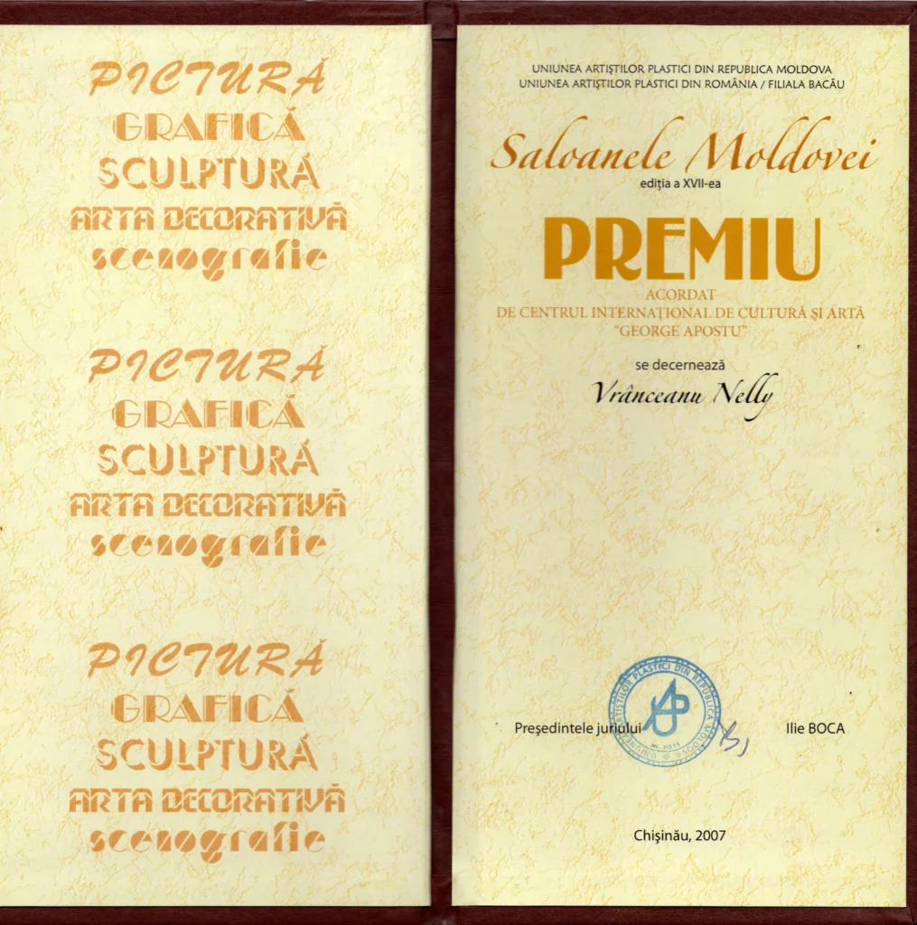 Présente aux Saloanele Moldovei, Nelly Vranceanu a été nommée et récompensée en 2007, recevant le prix du Centre International de Culture et Art “George Apostu”.