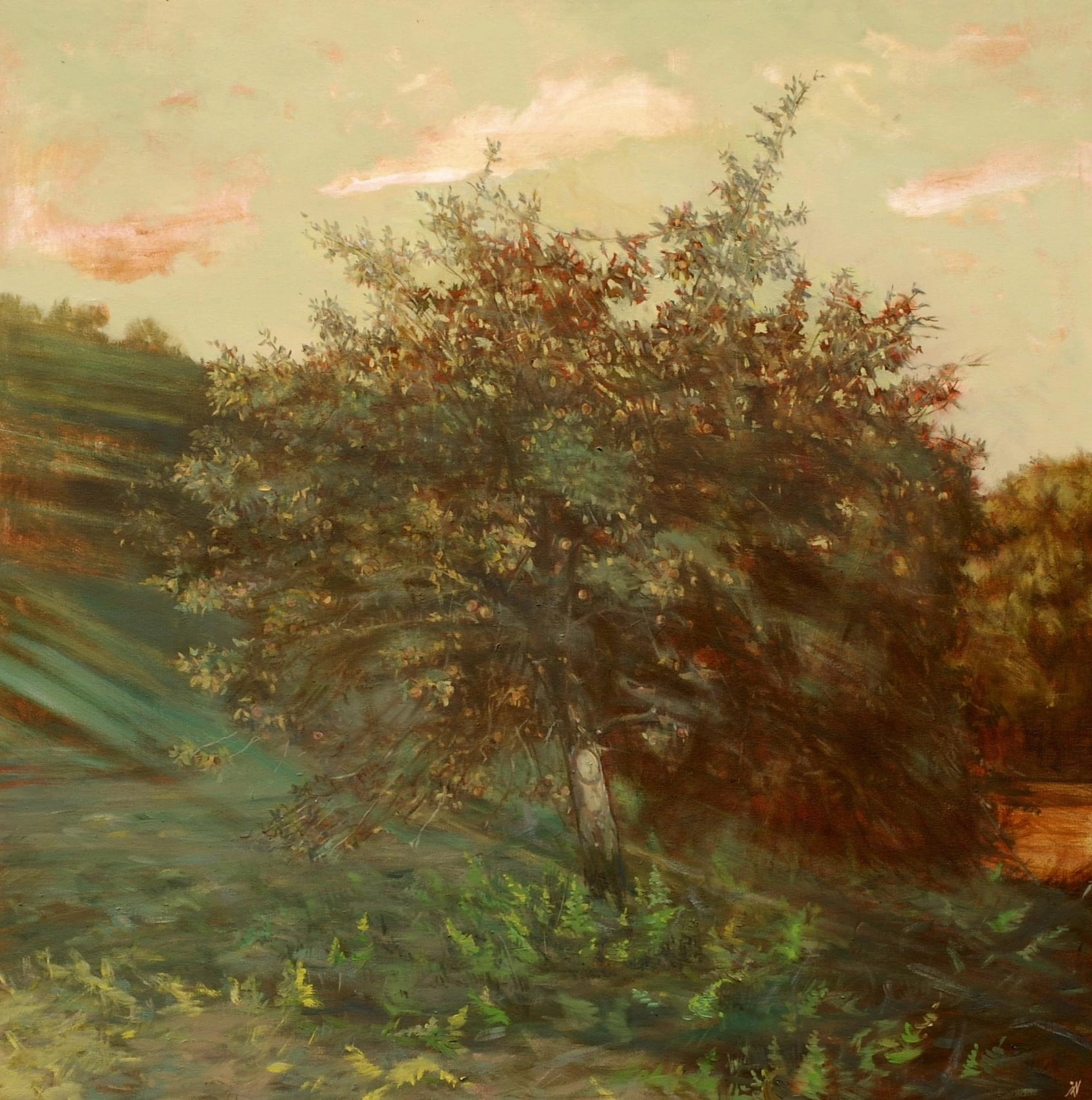 La palette de Nelly Vranceanu dialogue avec la tradition du paysage classique, tout en la déplaçant. On y retrouve une sensibilité proche de l’École de Barbizon, mais revisitée avec une profondeur contemporaine.Les terres, les ocres, les jaunes atténués, les noirs et les bruns composent des paysages où la lumière semble venir de l’intérieur même de la matière. Une lumière d’hiver, discrète, presque fragile.Ses œuvres donnent à voir des campagnes transformées, presque irréelles, où les arbres, les collines et les chemins deviennent des signes, des présences symboliques.